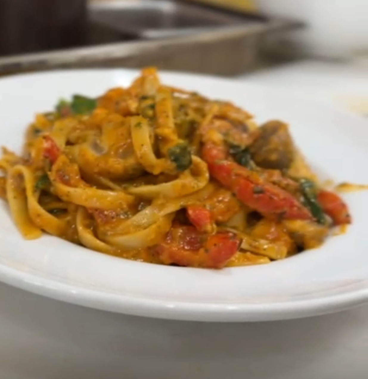 With chargrilled zucchini, red capsicum, mushroom, butternut pumpkin and baby spinach on our rich napolitana sauce with egg fettuccine
