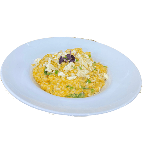 Roast pumpkin, peas & pinenut risotto