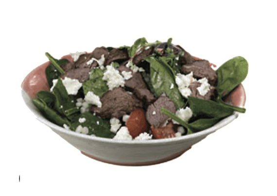 Pearl couscous, grilled lamb fillet, baby spinach, goat's cheese, cherry tomato, spanish onion with french dressing