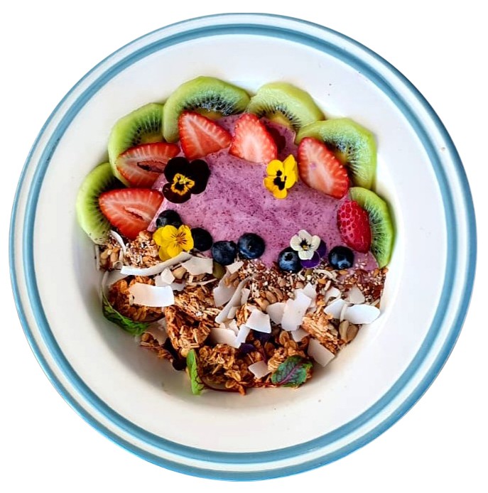 Acai fused with banana & berries, kiwi fruit tapped with mixed seeds/ nutsand served with house made granola