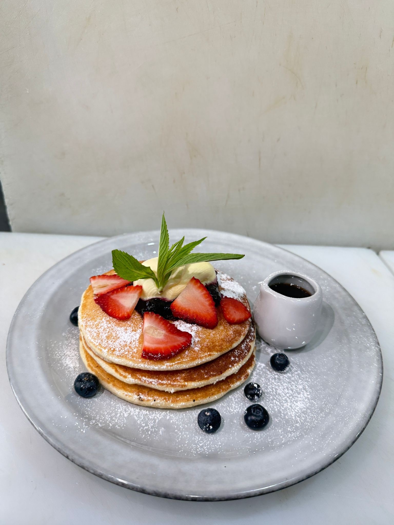 Served with mixed berries compote, mascarpone cheese, maple syrup