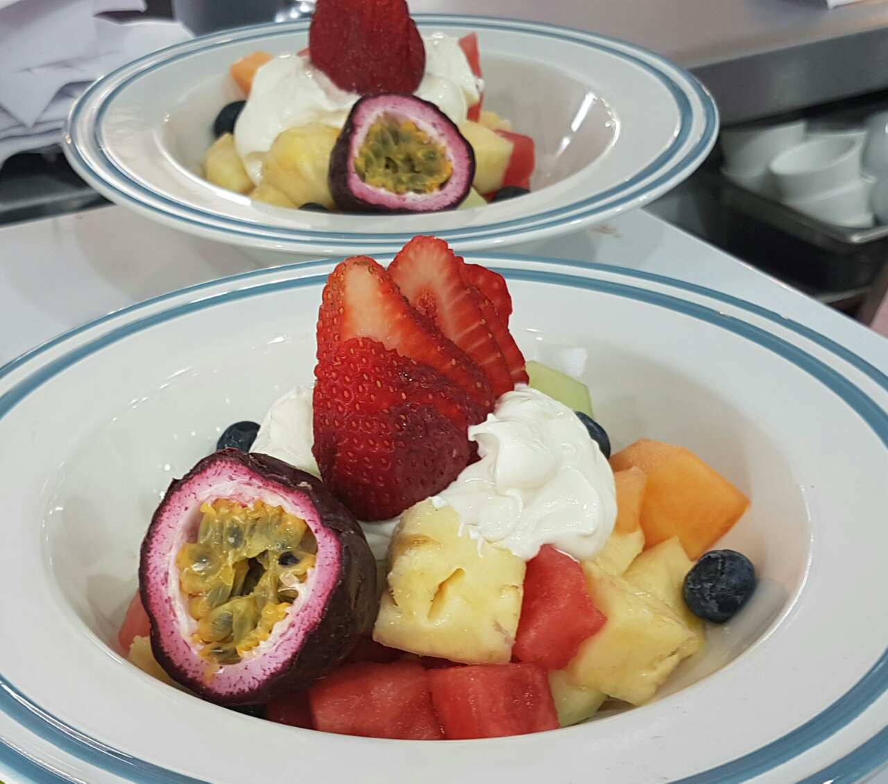 Fruit salad with youghurt and passionfruit