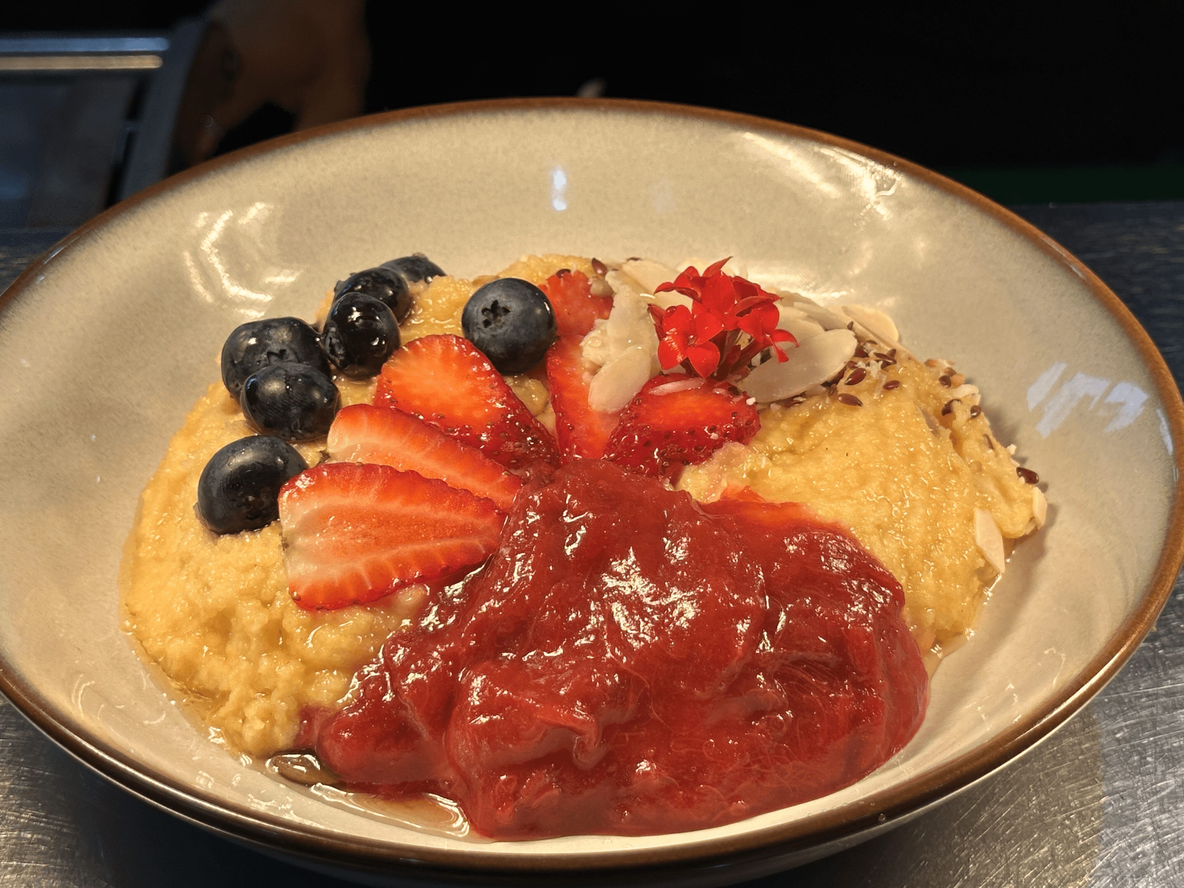 Creamy oat milk polenta porridge