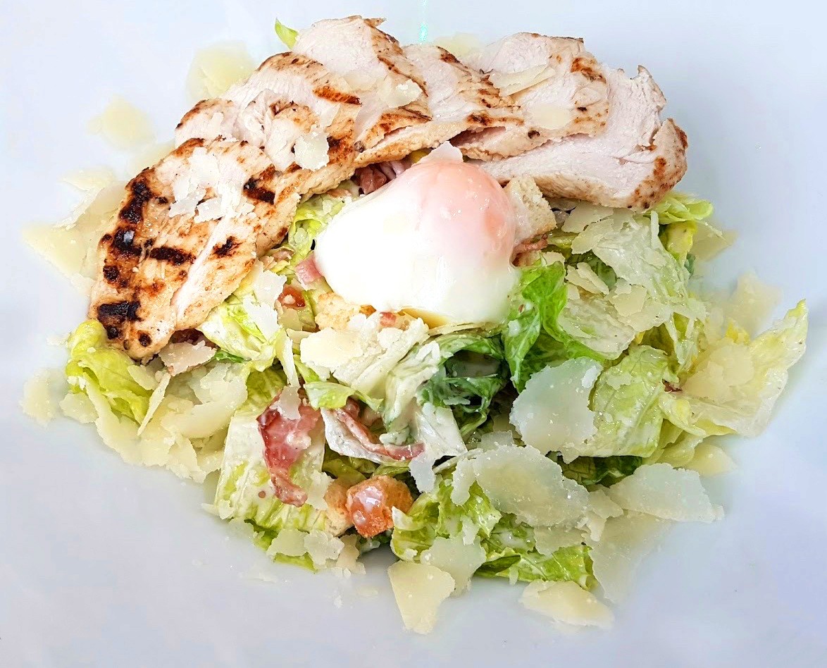 Cos-lettuce, croutons, shaved parmesan, crispy bacon, clow cooked egg with house made caesar dressing